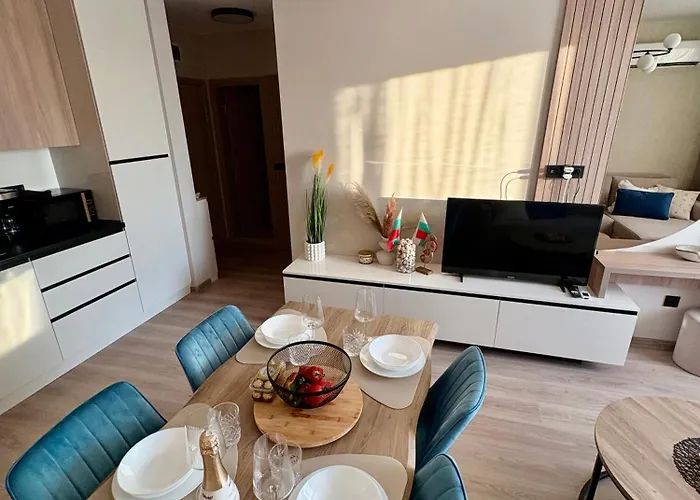 Premium Ferienwohnung SWETI WLAS Polarstar Beach Luxury Apartment 150 m zum Strand Pool 3 Balkone Meeresblick Google TV bis zu 6 Personen
